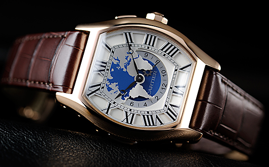 1953年に誕生したカルティエを代表するウォッチ・スタイルである「トーチュ(Tortue)」。この「トーチュ」とはフランス語で「亀」を意味し、その独特のトノー・フォルムで人気が高い。そのトーチュの最新モデルが「トーチュ マルチ タイムゾーン ウォッチ(Tortue Multi Timezones Watch)」。つまり、このモデルはワールドタイムである。