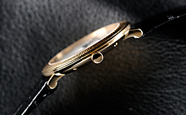 ケースは18KRG(写真)およびWGが用意されており、高精度なクオーツ・ムーブメントが搭載されている。