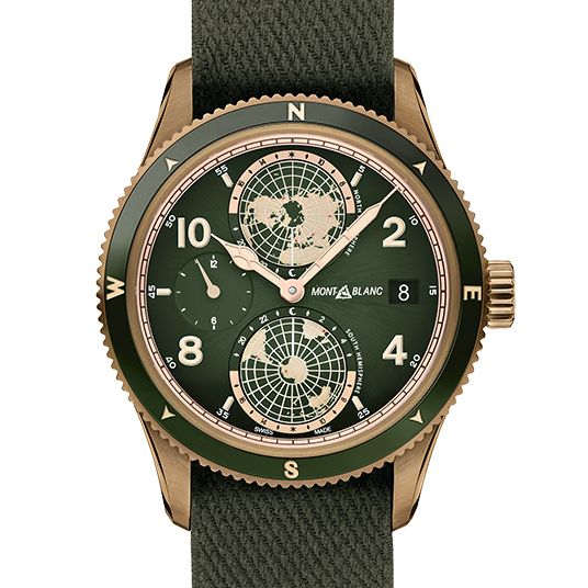 モンブランが2019年のSIHHで提示したのは“自然回帰”。ブース内は美しくそびえ立つ雪山が映し出された巨大なパネルを正面に、周囲を植物が取り囲む。フロアにはウッドのショウケースに収められた新作時計が点在しており、まるで大自然のなかにたたずむ珍しい動植物を眺めながら散策しているかのようだ。その新作の中心となるのは、ミネルバへのオマージュライン「1858」。ブースは山岳探検家たちに向けて時計を製作していた「1858」のコンセプトを表現したもので、新モデルもブロンズ製ケースとカーキグリーンのダイアルを組み合わせたことで、より自然を感じさせる意匠に仕上がっている。この「1858」ラインを筆頭に、「ヘリテイジ(Heritage)」ラインや「スターレガシー(Star Legacy)」「タイムウォーカー(TimeWalker)」など、超高級モデルから普及価格帯に至るまで全方位的に新モデルを発表し、幅広い層にアプローチする充実の内容となった。