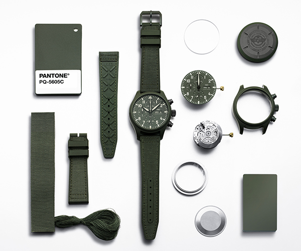 「パイロット・ウォッチ・クロノグラフ・トップガン “ウッドランド”(PILOT’S WATCH CHRONOGRAPH TOP GUN “WOODLAND”)」は、米海軍パイロットのフライトスーツにインスパイアされたグリーンのセラミックケース採用モデル。これでトップガン・シリーズにはブラック、ホワイトと合わせて3色のセラミックケースが揃い、その開発は米パントン社との協力の下に行われている。マットブラックのプッシュボタンとトップガンのロゴが刻印された裏蓋は、チタニウムとセラミックの特性を併せ持つセラタニウム®製。コラムホイール採用の自社製自動巻きムーブメント、Cal.69380搭載。軟鉄製インナーケース採用。年間1,000本限定生産。IWCブティックならびにEブティック限定販売。