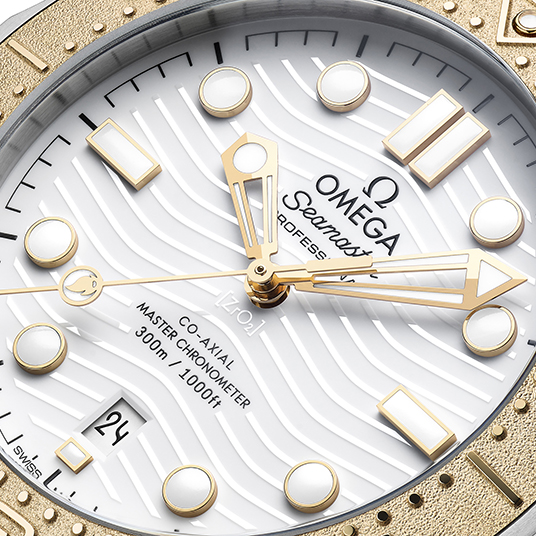 仕様:時・分・秒・日付表示、18Kムーンシャイン™ゴールド製逆回転防止ベゼル、ねじ込み式リュウズ、ヘリウムエスケープバルブ、ホワイトセラミック製ダイアル、ステンレススティール製ケースバックにパリ 2024のエンブレムが描かれた18Kムーンシャイン™ゴールド製メダリオン