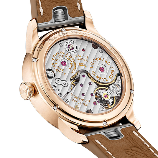 ムーブメント:手巻き、Cal.L.U.C 98.09-L、約216時間(9日間)パワーリザーブ、毎時28,800振動(4Hz)、38石