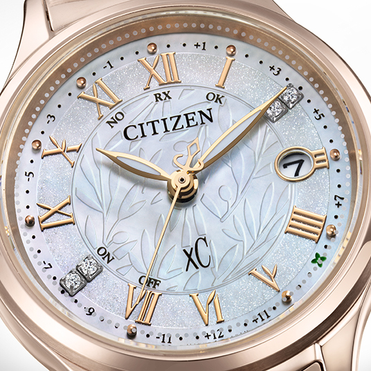 仕様:時・分・秒・日付表示、白蝶貝文字盤に4ポイントのラボグロウン・ダイヤモンド、パワーセーブ機能、電波受信(日中米欧)、パーフェックス、ワールドタイム機能(24時差)、パーペチュアルカレンダー、サマータイム機能、定時受信機能、強制受信機能、充電残量表示機能、夜光(針)、耐ニッケルアレルギー、1種耐磁時計