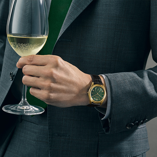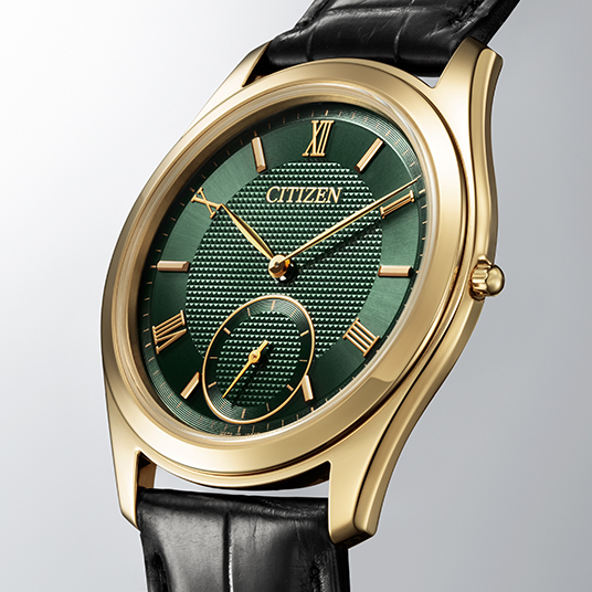 仕様:時・分・秒(スモールセコンド)表示、ボトルグリーン文字板、サファイアガラス(クラリティ・コーティング)