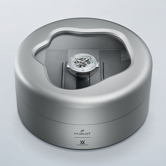 ケース素材:シャイニーマイクロブラスト加工を施したチタニウム、反射防止加工を施したサファイアクリスタル