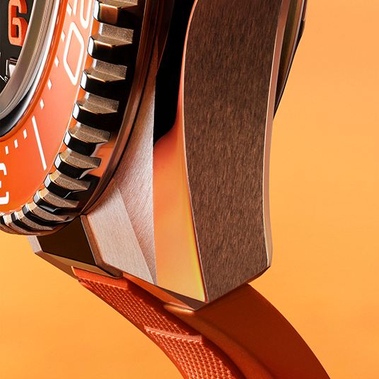 仕様:時・分・秒表示、ホワイトのハイブリッドセラミックのダイビングスケールを施したのオレンジセラミック製ベゼルリング、グレード5チタン製インナーリング、マットブラックダイアル、グレード5チタン製ねじ込み式ケースバックにシーホースのエンブレム
