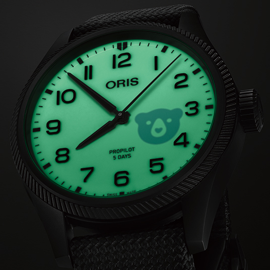仕様:時・分・秒表示、文字盤にホワイトスーパールミノバ®を塗布し暗闇ではオリスベアのシルエットが出現、シースルーケースバック、マイオリス登録によりムーブメントの保証を10年間に延長