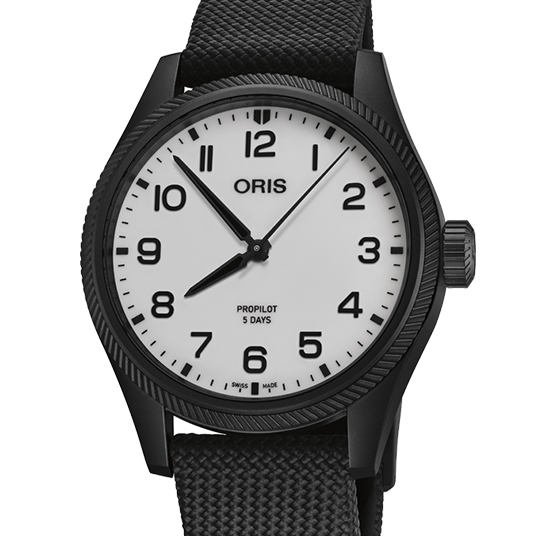 ストラップ:テキスタイル、オリス開発の折りたたみ式「LIFT」クラスプ(ブラックDLCコーティング)