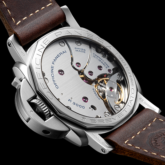 ムーブメント:自動巻き、Cal.P.3000、3日間パワーリザーブ、毎時21,600振動、21石、インカブロック®耐震装置
