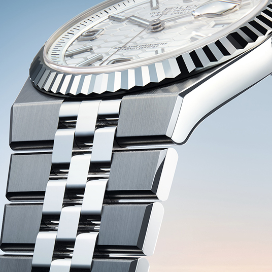 ケース素材:オイスタースチールとホワイトゴールド(ホワイトロレゾール)