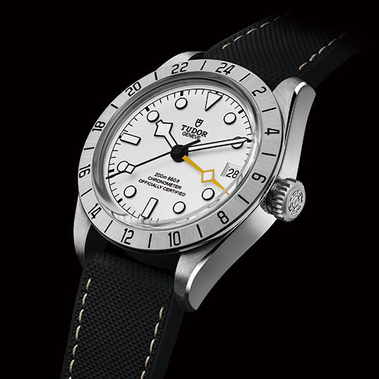 仕様:時・分・秒・日付表示、GMT、ステンレススチール製固定ベゼルに24時間目盛り、ドーム型のオパラインダイアル、ステンレススチール製スクリュー式リューズにチューダーローズのレリーフ