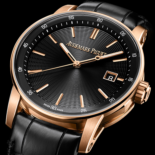 仕様:時・分・秒・日付表示、「CODE 11.59 バイ オーデマ ピゲ」シグネチャーパターンのブラックダイヤル、18Kピンクゴールドのアワーマーカー、蓄光加工が施された18Kピンクゴールドの針、ブラックのインナーベゼル、サファイアケースバック