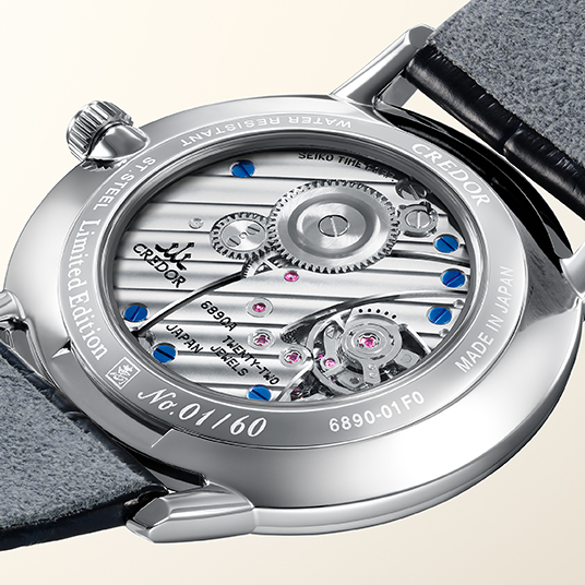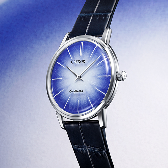 仕様:時・分表示、伊万里鍋島焼のブルーグラデーションダイヤル、ボックス型サファイアガラス(内面無反射コーティング)、シースルーバック